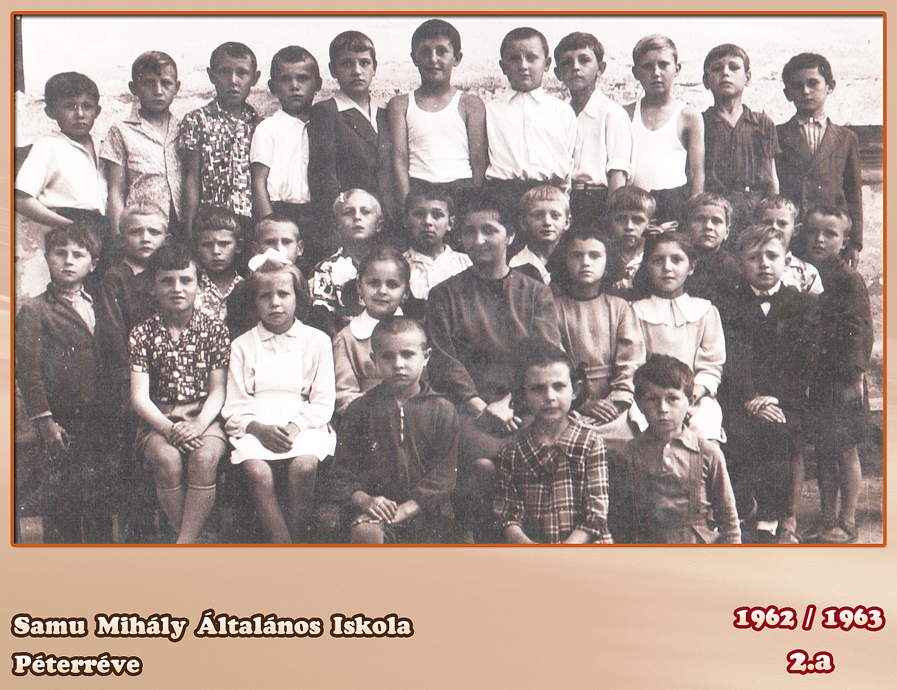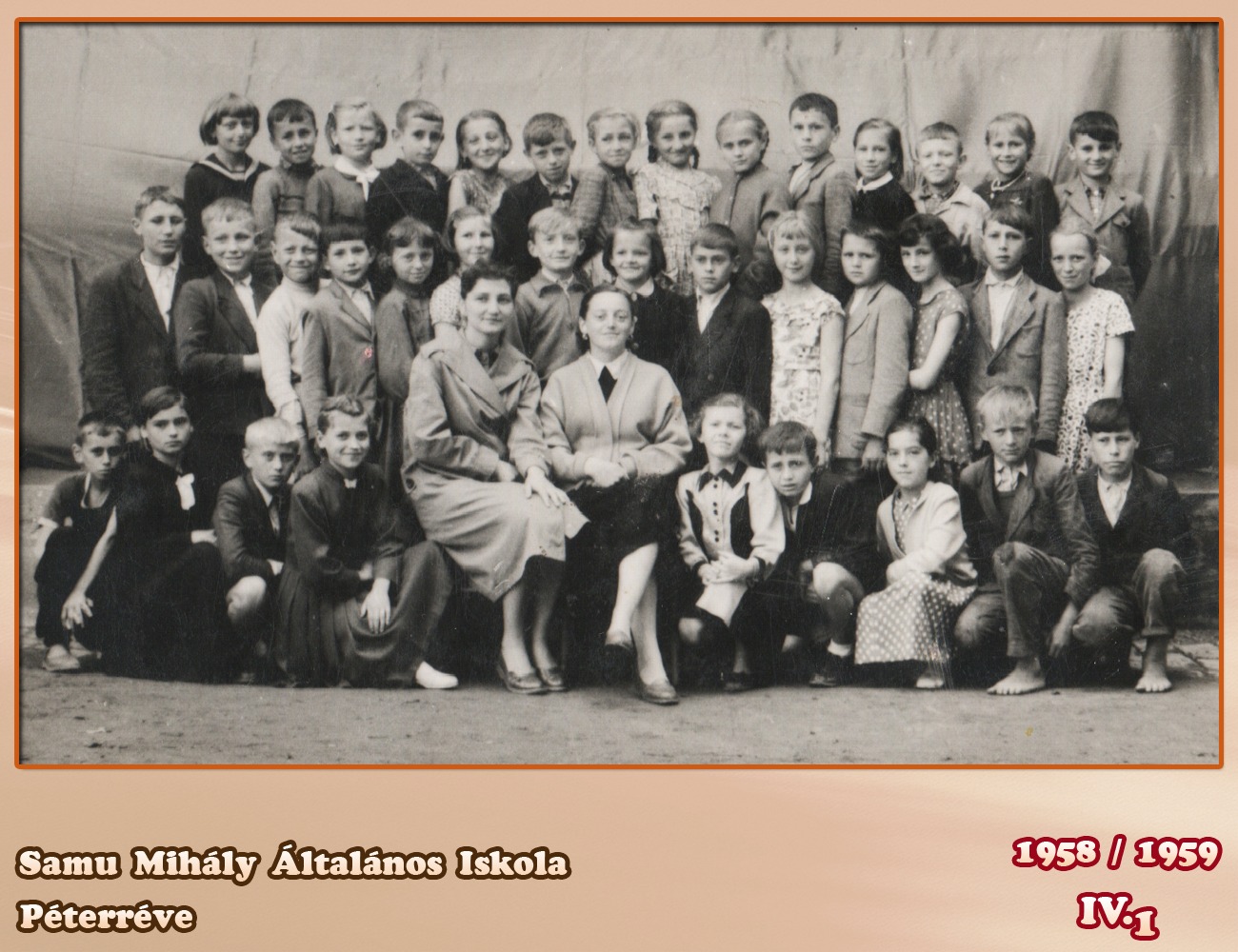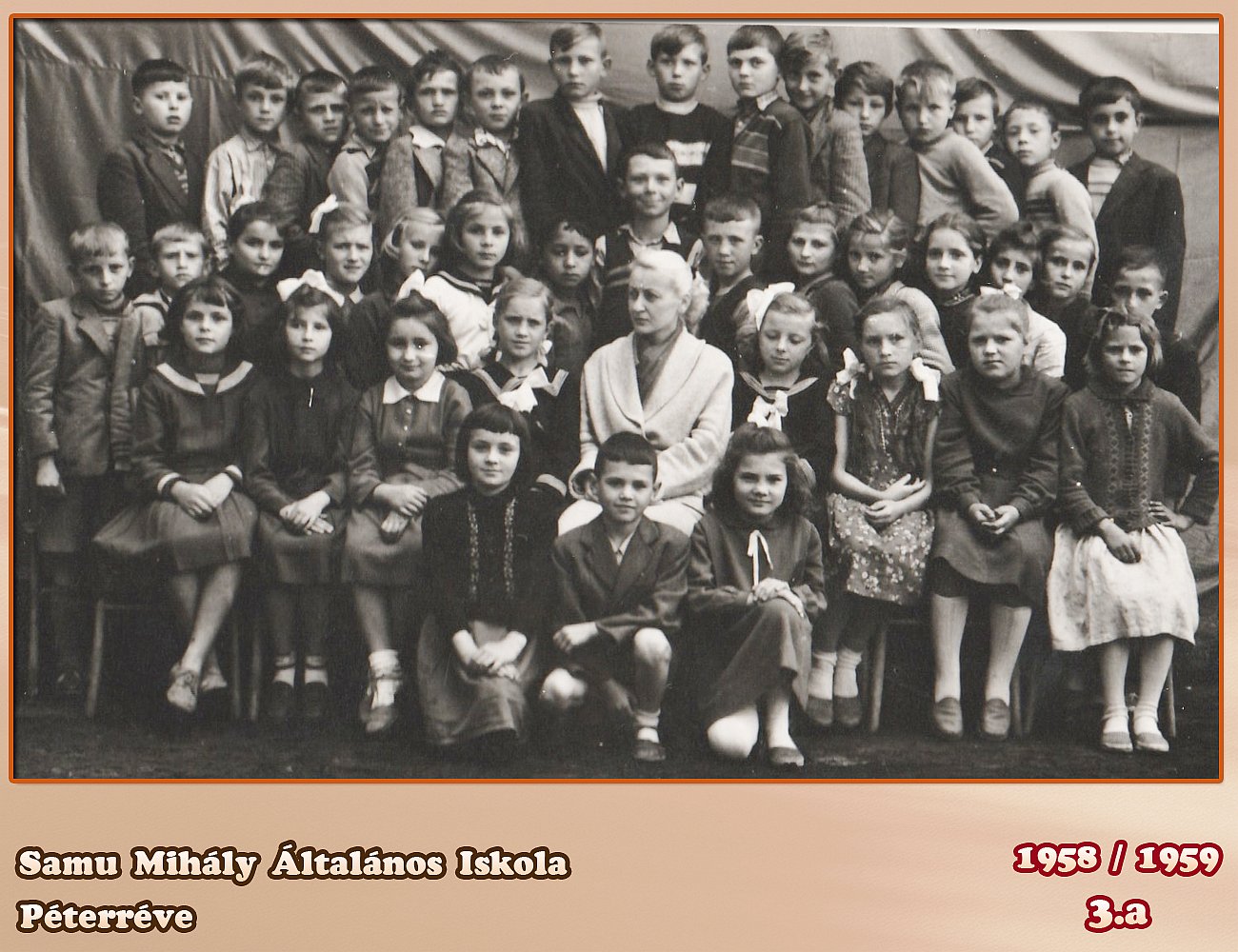 Tanító néni Síndeles Irén 1 sor bal Tokodi Sándor Kovács László Maka József 2 sor jobb Kis Mihály Kalapos József Krizsák György Kis Lajos Szilágyi Szilveszter Kis Mihály Százi ........................ Teleki József 3 sor bal Márkus Irén Szórák Rozsa Majsai Zsuzsanna Síndeles Katinka Zsellér Rozsa ........... Mária balról Maka Imre Tot József Balassa Zoltán Tót János 3 sor bal Muhi János Nagy Imre Szőke Ferenc Gór Károly Sétáló Ferenc Pataki Mihály Beretka József Dávid László Lukács Zoltán Sípos Károly ................ sajnálom ha valakit nem jól írtam be vagy nem tudtam a nevét bocsánat !
