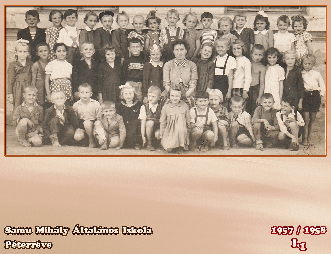 Tanító néni mellett ül Gyetvai Kocsis Katalin (a mi Katica nénink, aki sokáig barátságosabbá varázsolta a félelmetes egészségházat)... A tanító bácsi mellett pedig Péter Solymosi Gizella van (Gizike néni, az iskola nyugdíjas titkárnője)...a többit lehet folytatni...