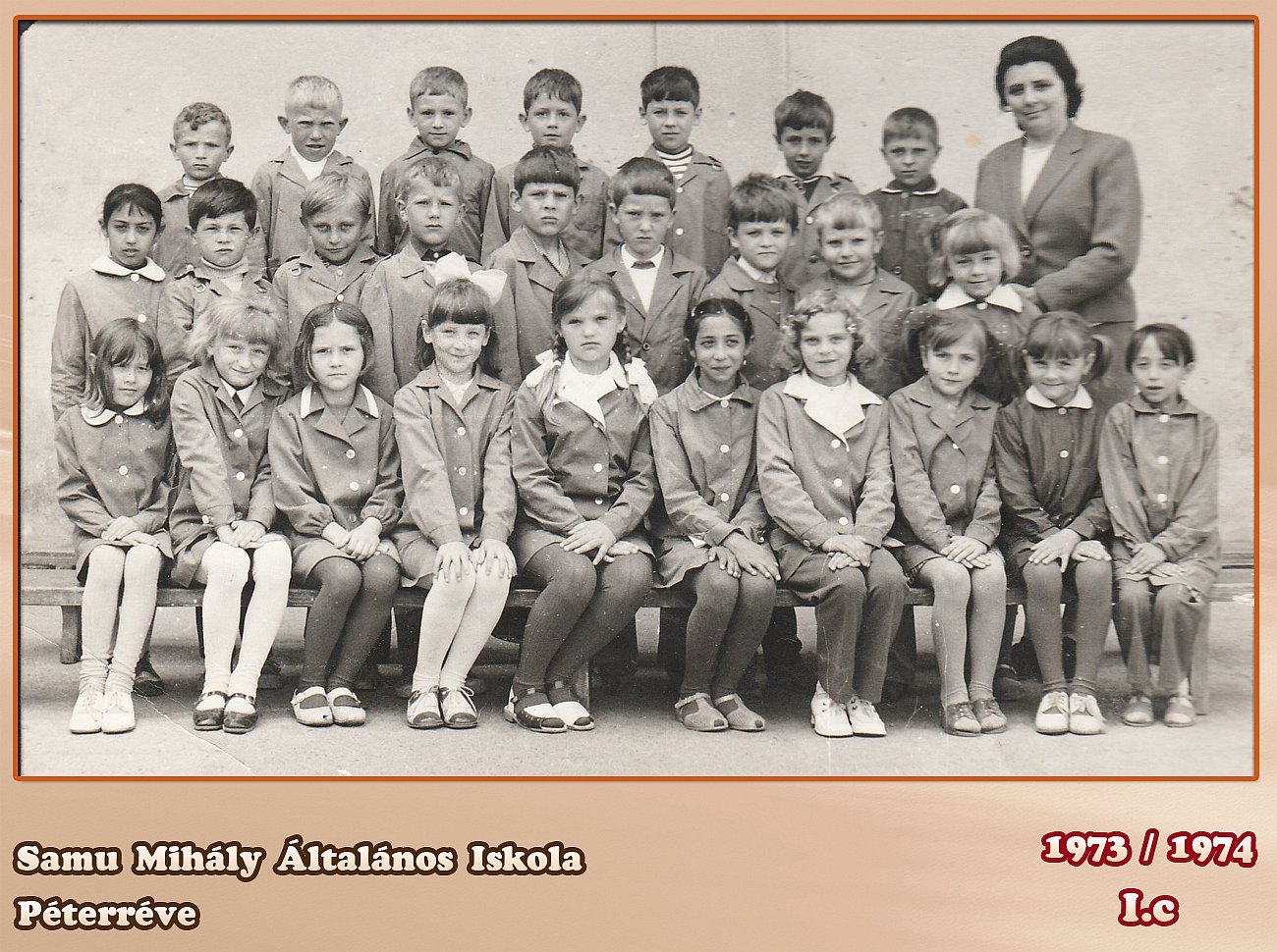 Alsó középső sor: Koncz Verona?, Szabó Konc Éva, Barna Katalin, Rozsa Szegi, Bonifárt Magdolna tanitónő, Tubik Klára, Halápi Jolánka, Madarász sz. Pakai Gabriella, Gallusz Ildikó,